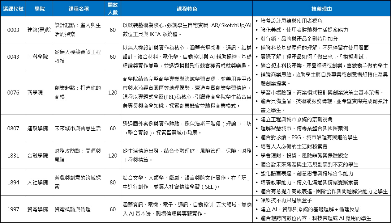 限非所屬學院之日間部大學部一年級新生選讀;名額有限,先登記者先錄取。